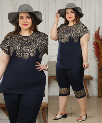 تاپ شلوارک سوپر سایز ویسکوز ، چاپ چرخ دنده گلد