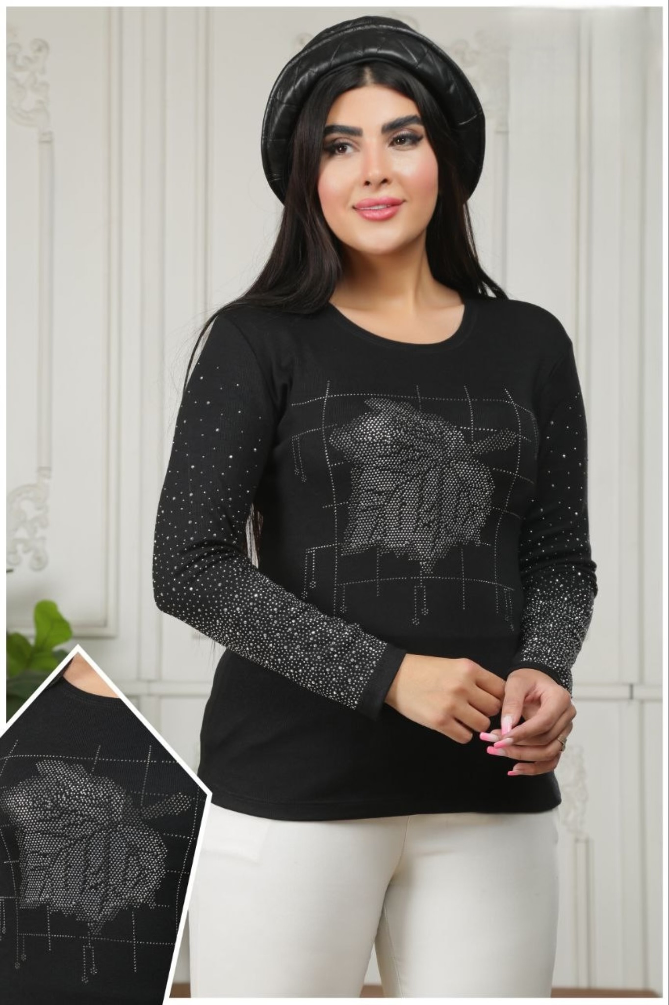 بلوز آستین بلند پارچه فانریپ چاپ رزین آستین و سینه
